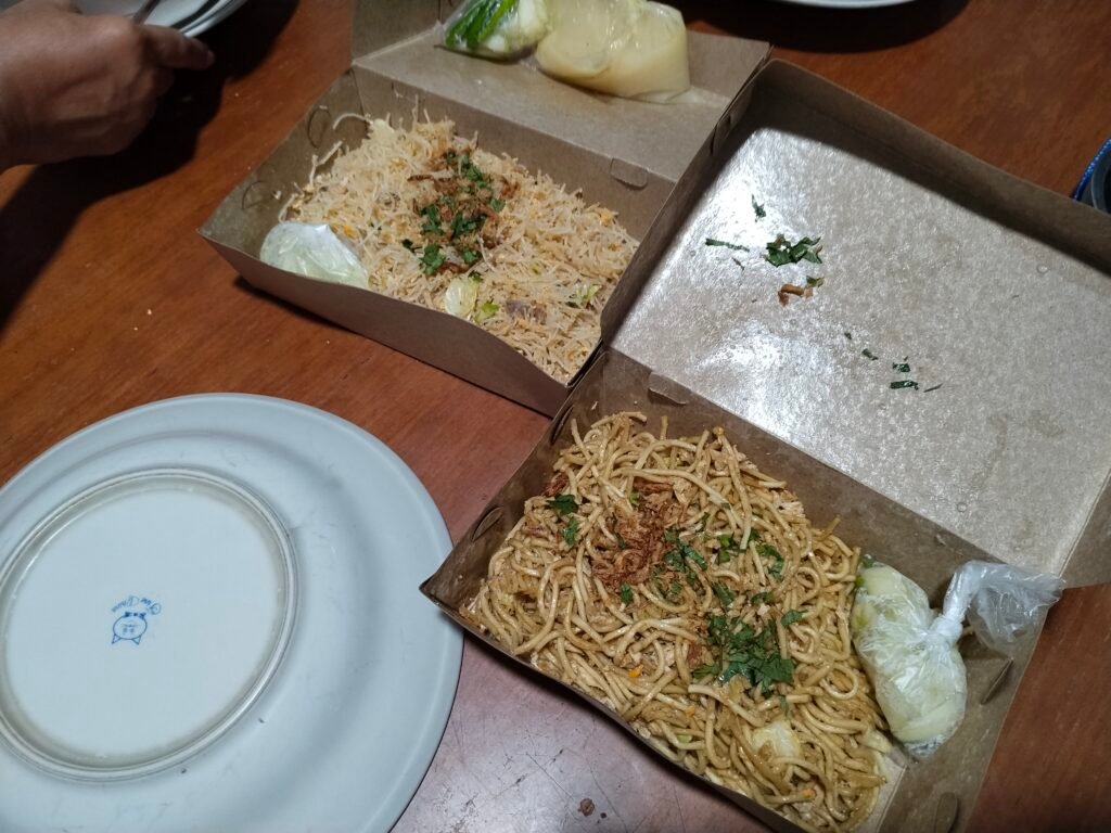bakmi jawa pak abu yang dipesan lewat WA sewaktu hujan. WA pesanan, dihitung, bayar via qris/transfer, kemudian diambil atau digosend. sebuah kenikmatan yang hqq.