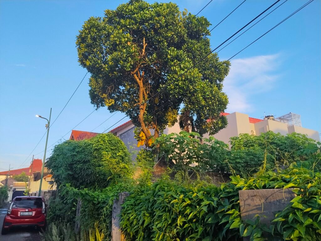 daun yang terkena sinar matahari pagi di atas tanah yang bertahun-tahun tak diurus pemiliknya. semoga bisa kami miliki kapan-kapan, tapi semuanya milik Allah bukan?