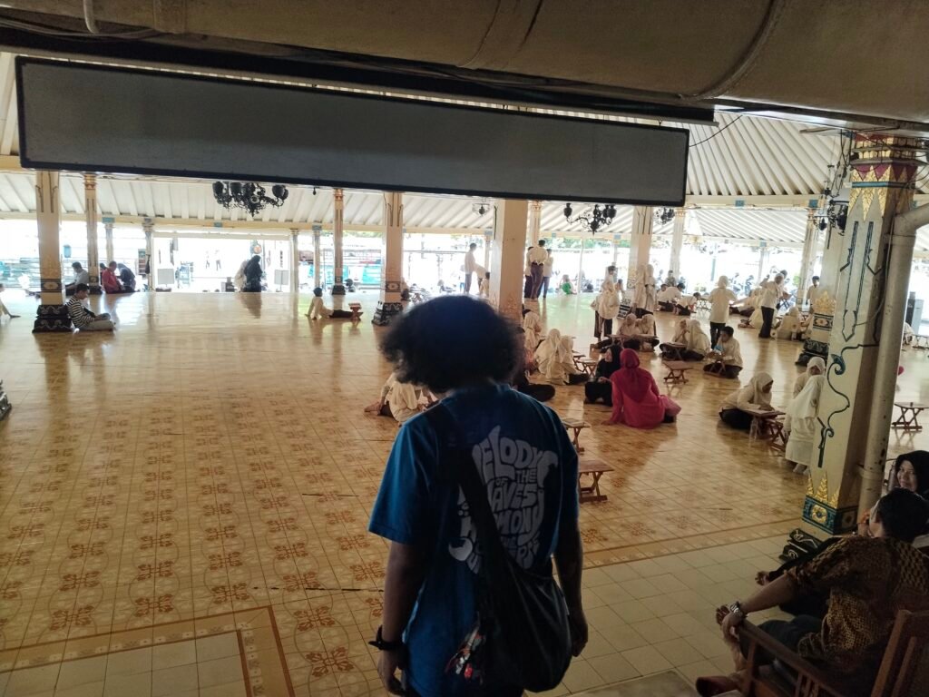 kemudian lanjut mengantar buku pesanan ke SLB Sayidan dan Cherrypop di dekat Pasar Ngasem. Setelah selesai, kami kembali ke Allah di Masjid Agung Kraton. Nyes adem banget di komplek masjid itu. Ada keramaian anak-anak SD lagi makan siang dan belajar, tapi masjid bukannya lebih baik ramai daripada sepi tanpa orang, apalagi tanpa anak-anak yang akan menjadi penerus di masa depan.